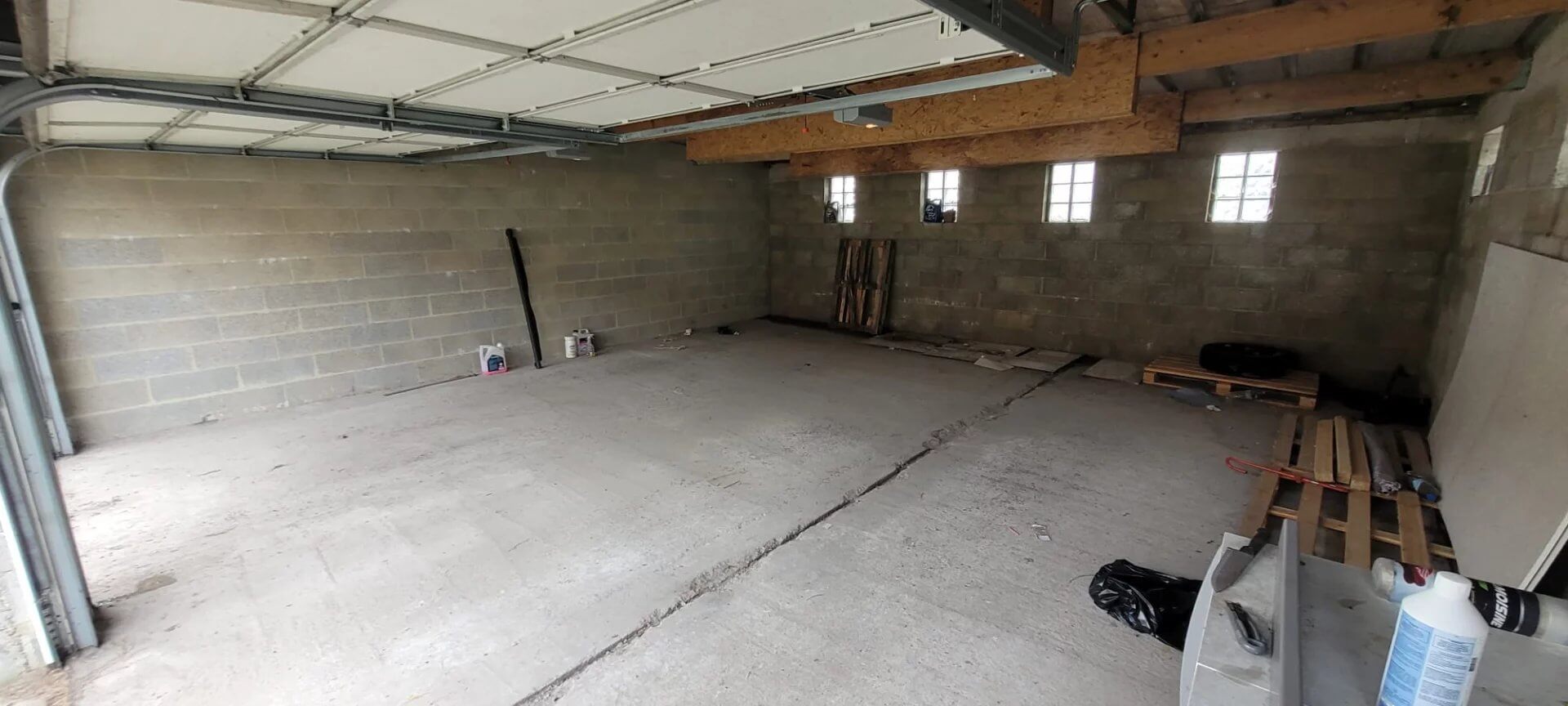 EXTERIEUR : Jardin + 2 Garages dont 1 de 52m² avec 2 portes sectionnelles + 1 local poubelle (10m²)