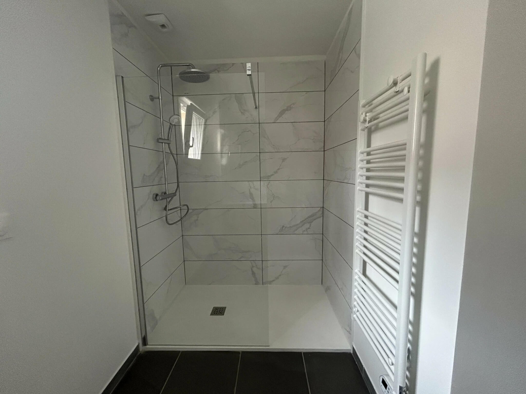 RDC : Grande pièce de vie avec sa cuisine ouverte,couloir desservant 1 chambre, SDB, WC séparé
