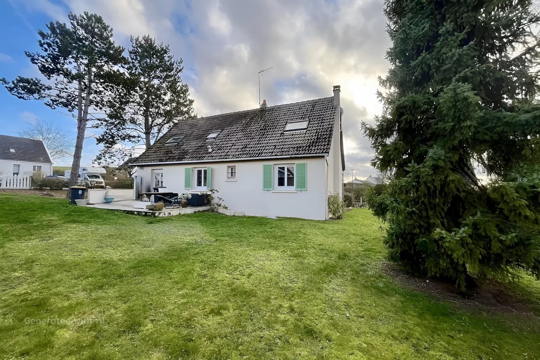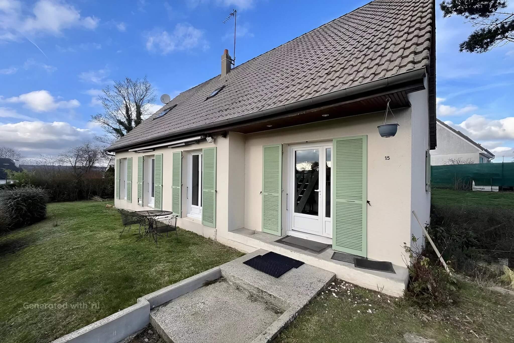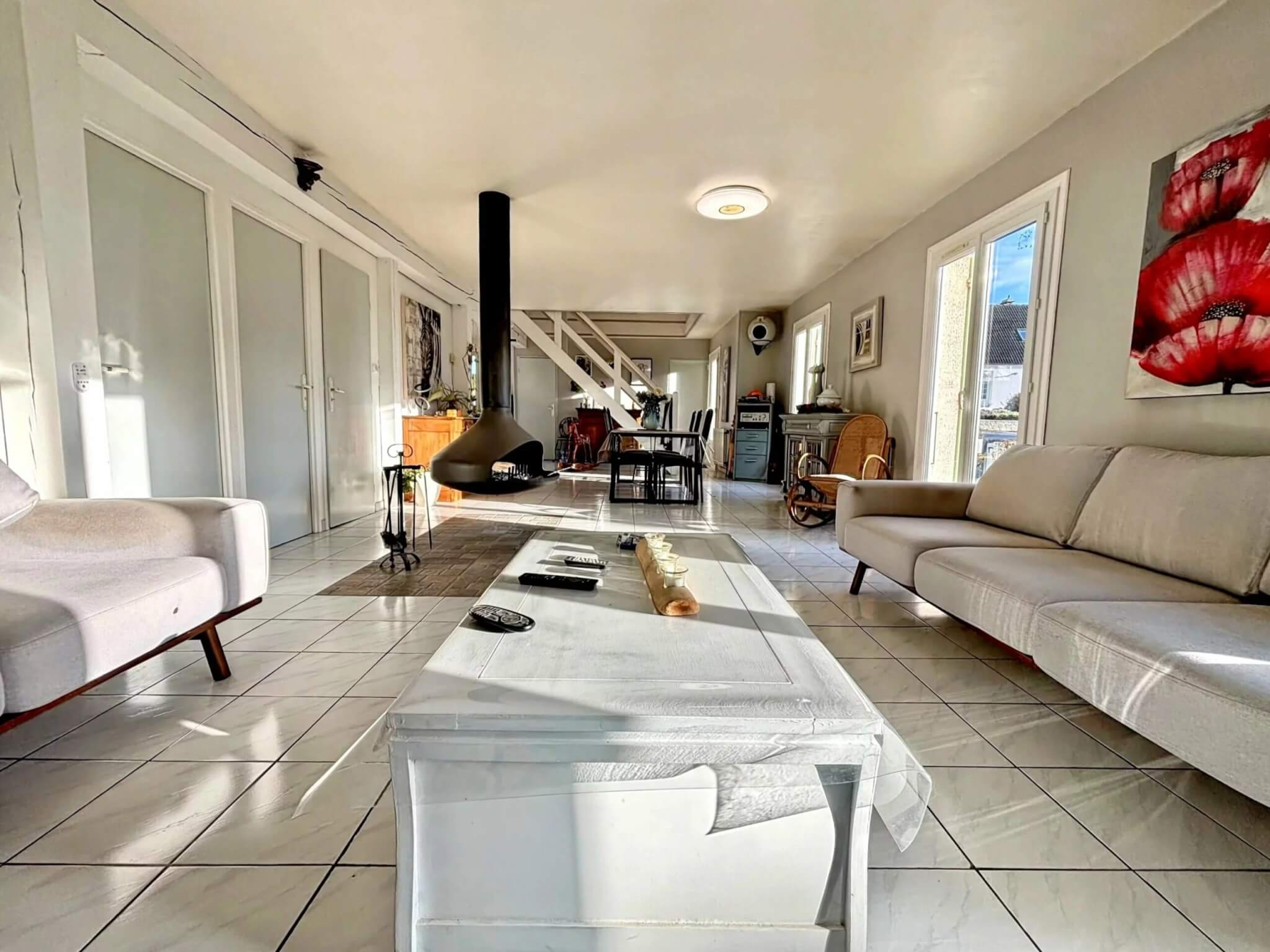PRESTATIONS : Menuiseries double vitrage + Volets roulants, relié au TOUT A L’EGOUT,+ Cheminée ERGOFOCUS (énergie renouvelable).