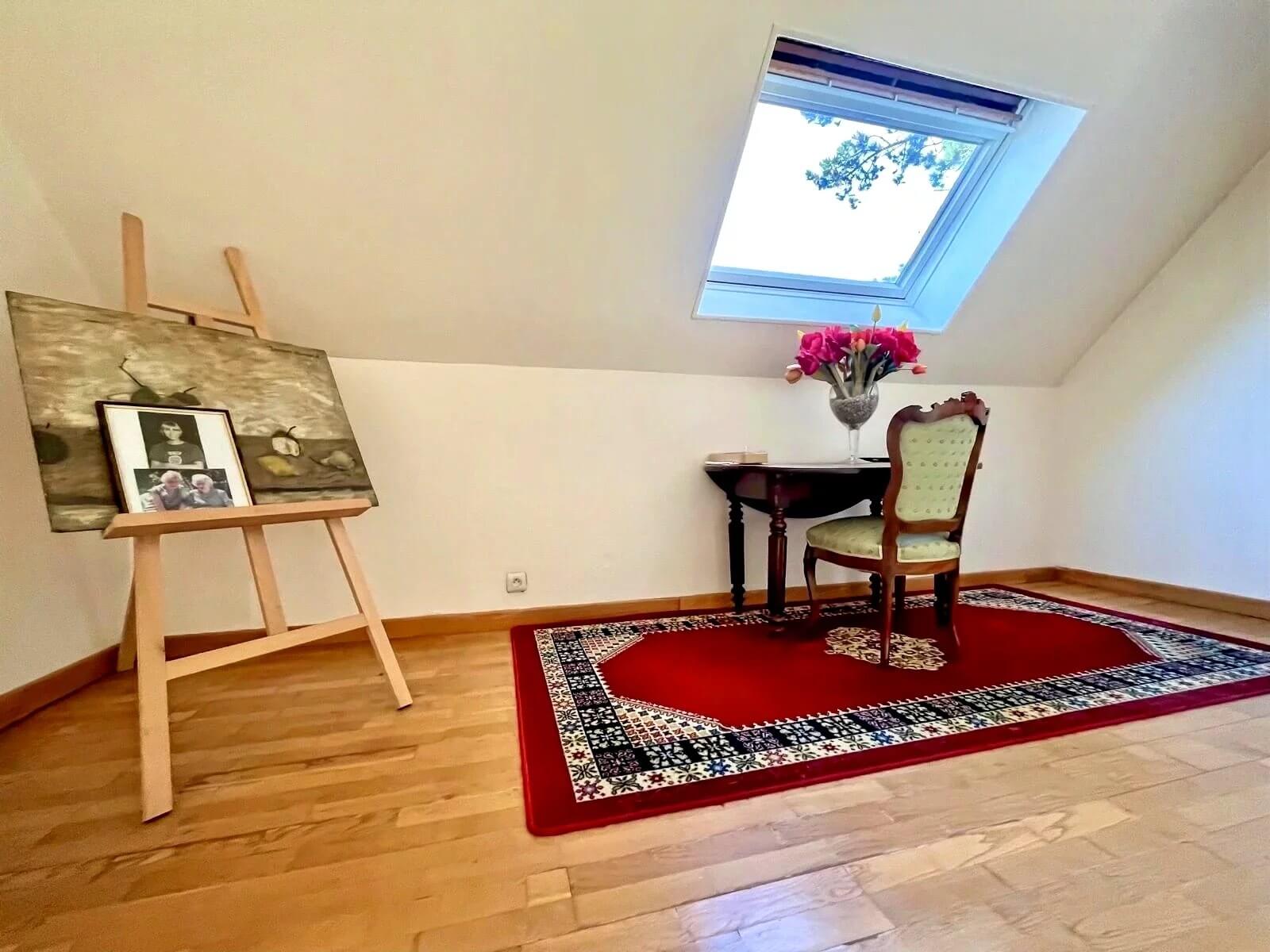 ETAGE : un grand palier de 16m² qui dessert 2 chambres, une salle d’eau avec WC et une bibliothèque